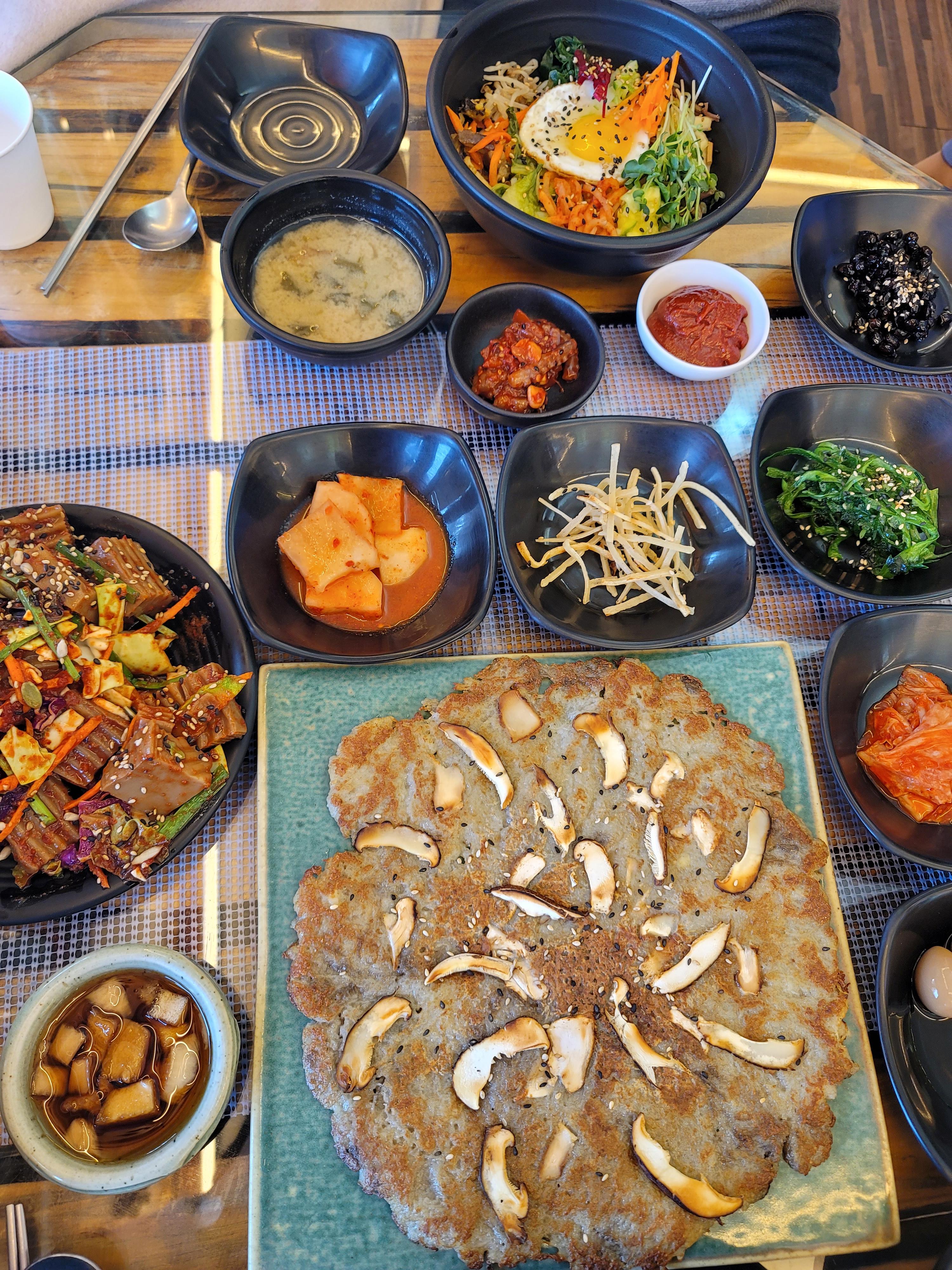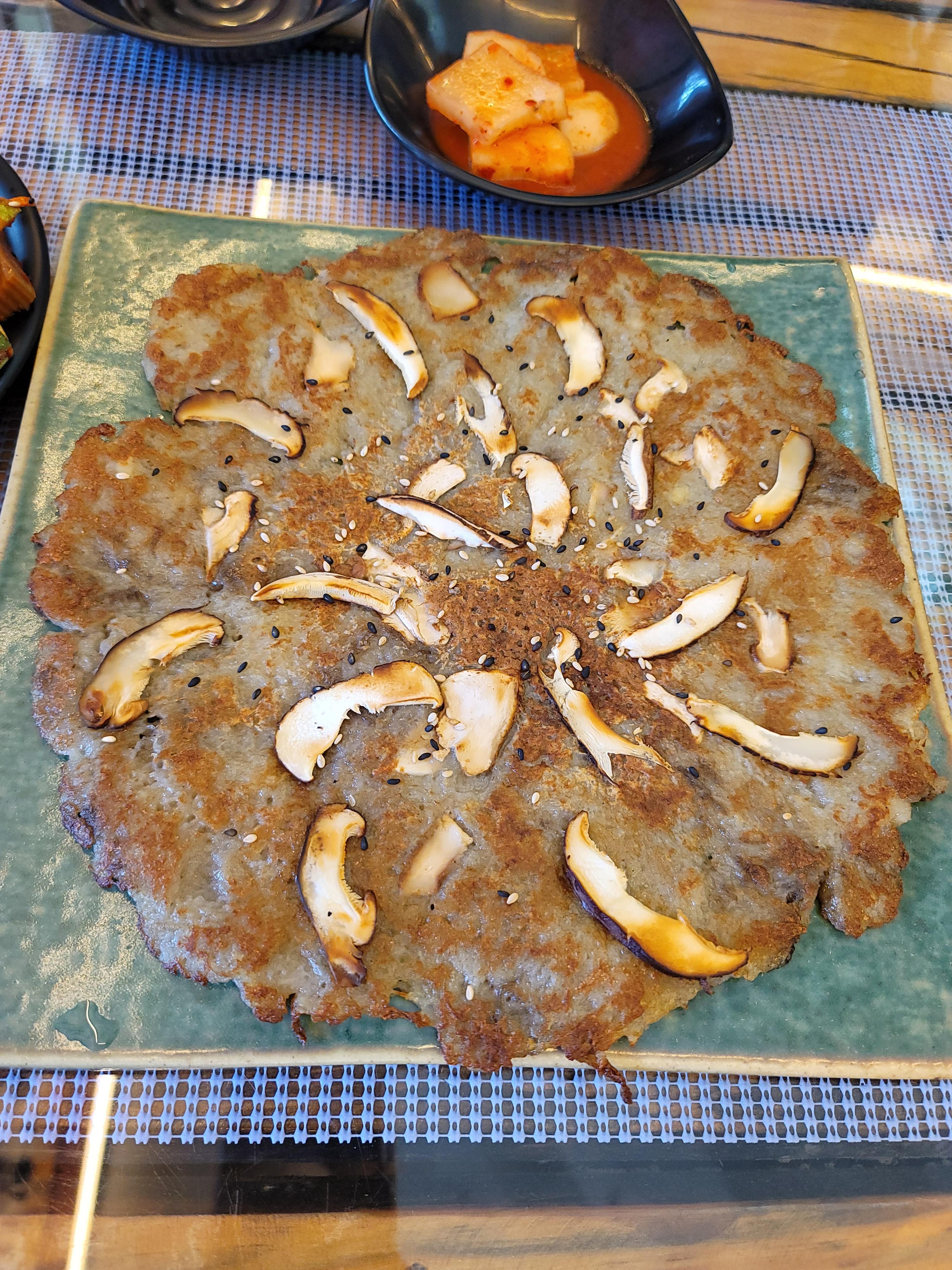 맛있는 감자전도 시켜봅니다. 표고버섯으로 토핑이 올라가 있어 표고의 향긋한 향이 너무 좋았어요.