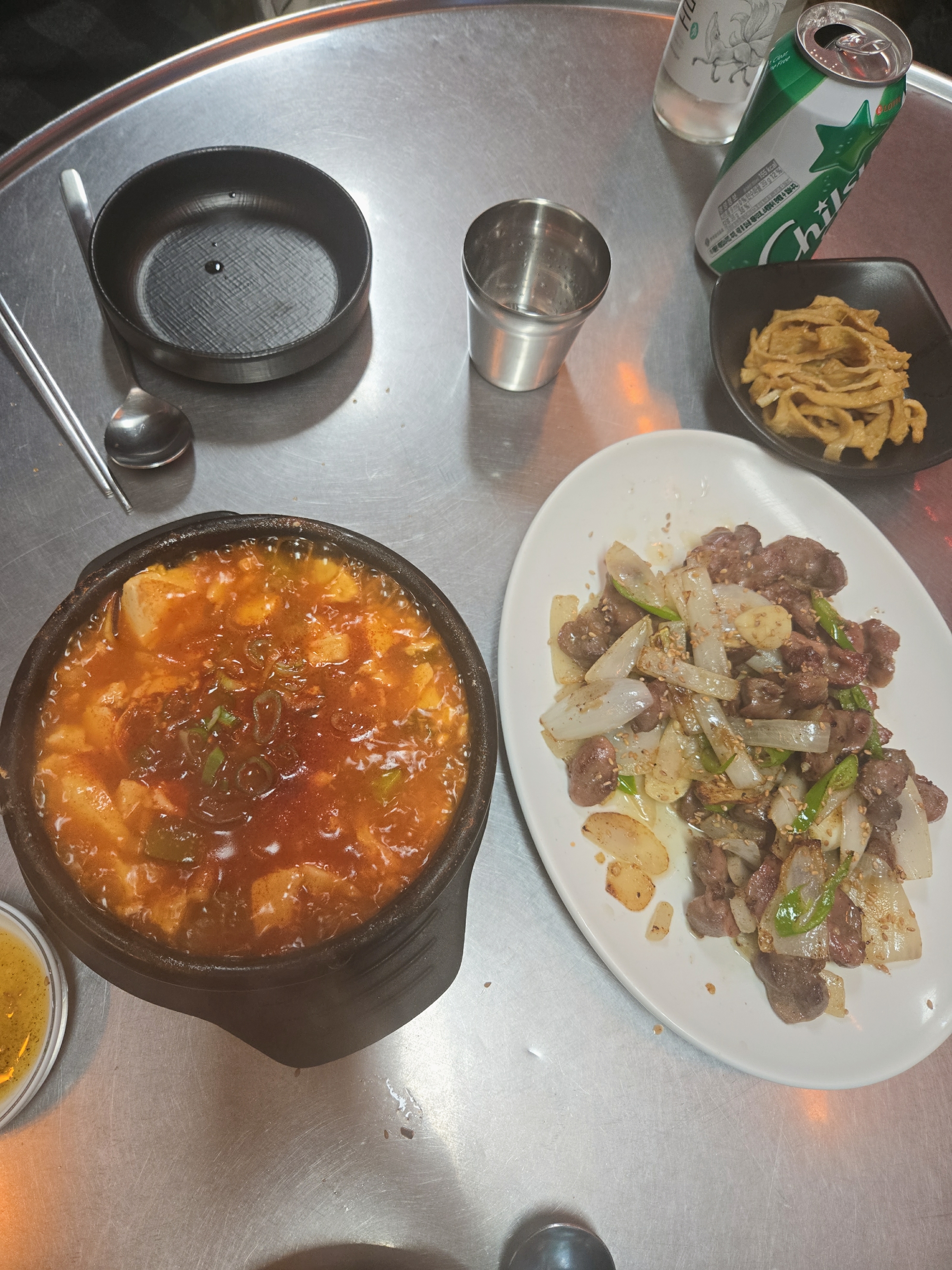 이날은 닭똥집과 순두부를 시켰어요~ 여기는 안주들이 다 저렴하고 맛있어요. 가성비 맛집 김포 풍무동 맷돌 빈대떡 신사 입니다. 전도 녹두전, 감자전, 해물파전 다 먹어봤는데 너무 맛있고 빠삭해요^^ 비오는날 막거리에 먹어도 죽여줍니다~~