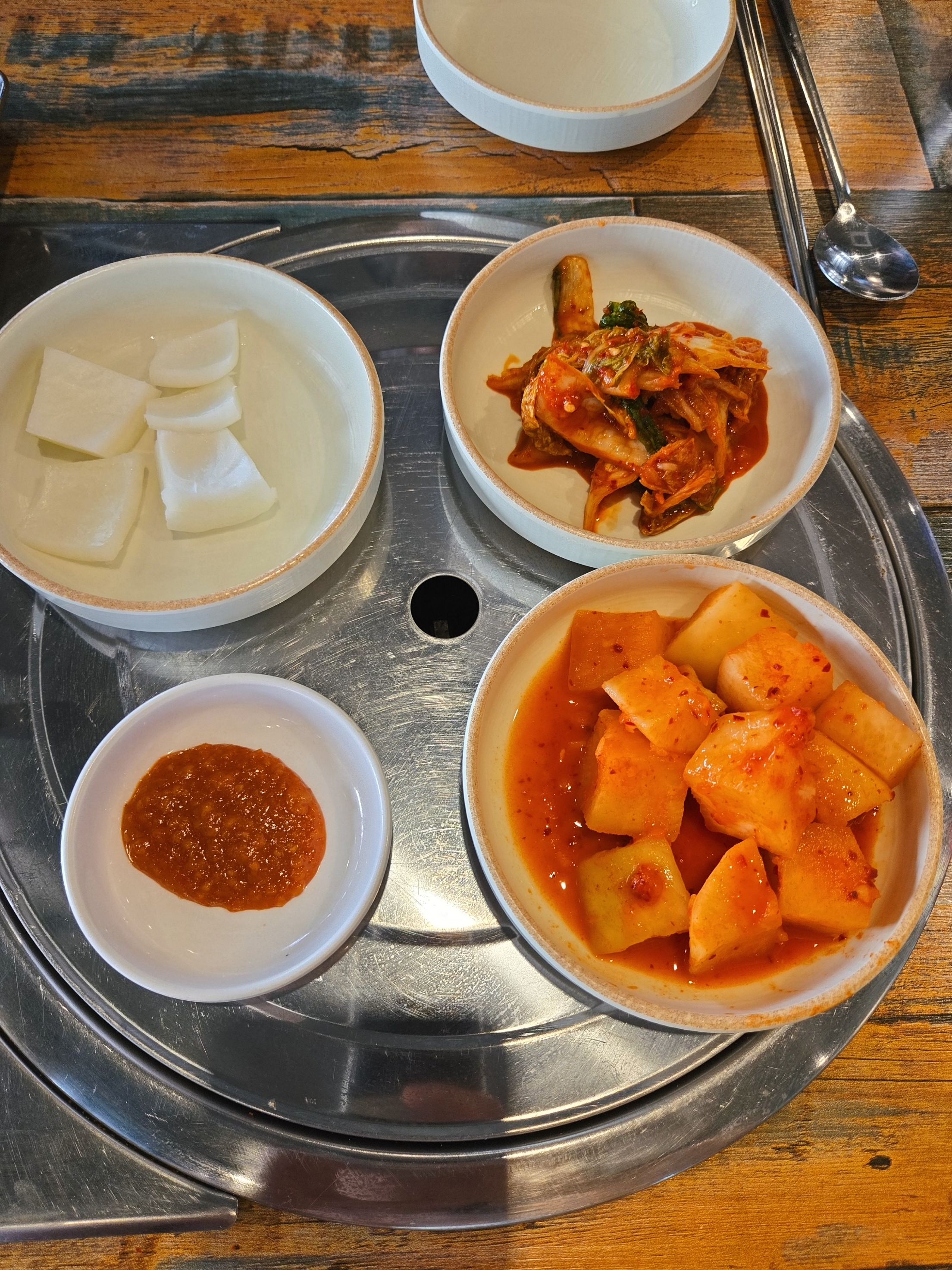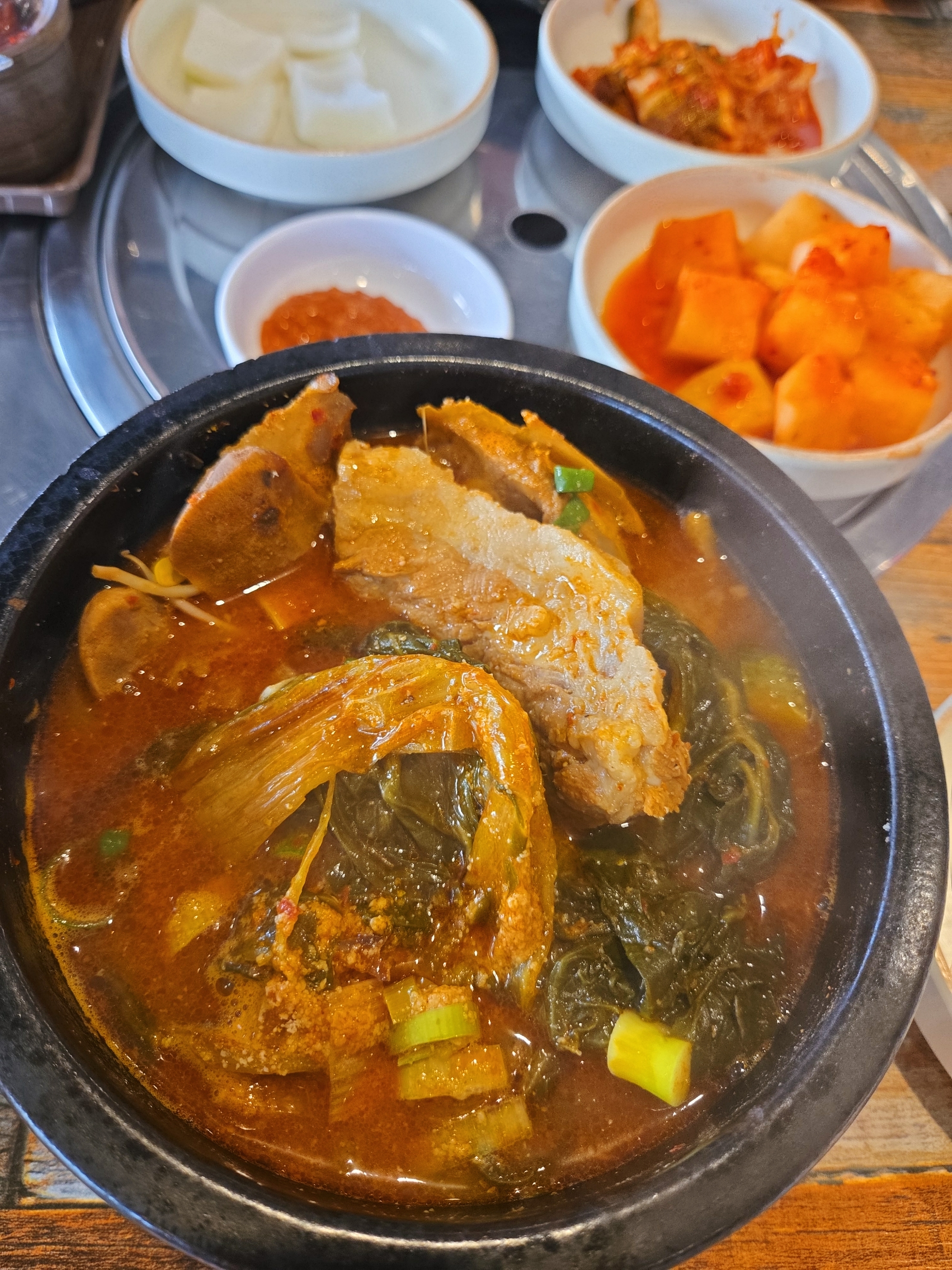 해장국집은 김치가 정말 맛있어야 하는거 다들 아시죠? 김치와 깍두기가 얼마나 맛나던지 저희는 두번이나 리필을 해서 먹었습니다. 눈치보지 않고 모자란 반찬은 셀프로 더 가져다 먹을 수 있다는 점도 부담되지 않고 좋았어요.