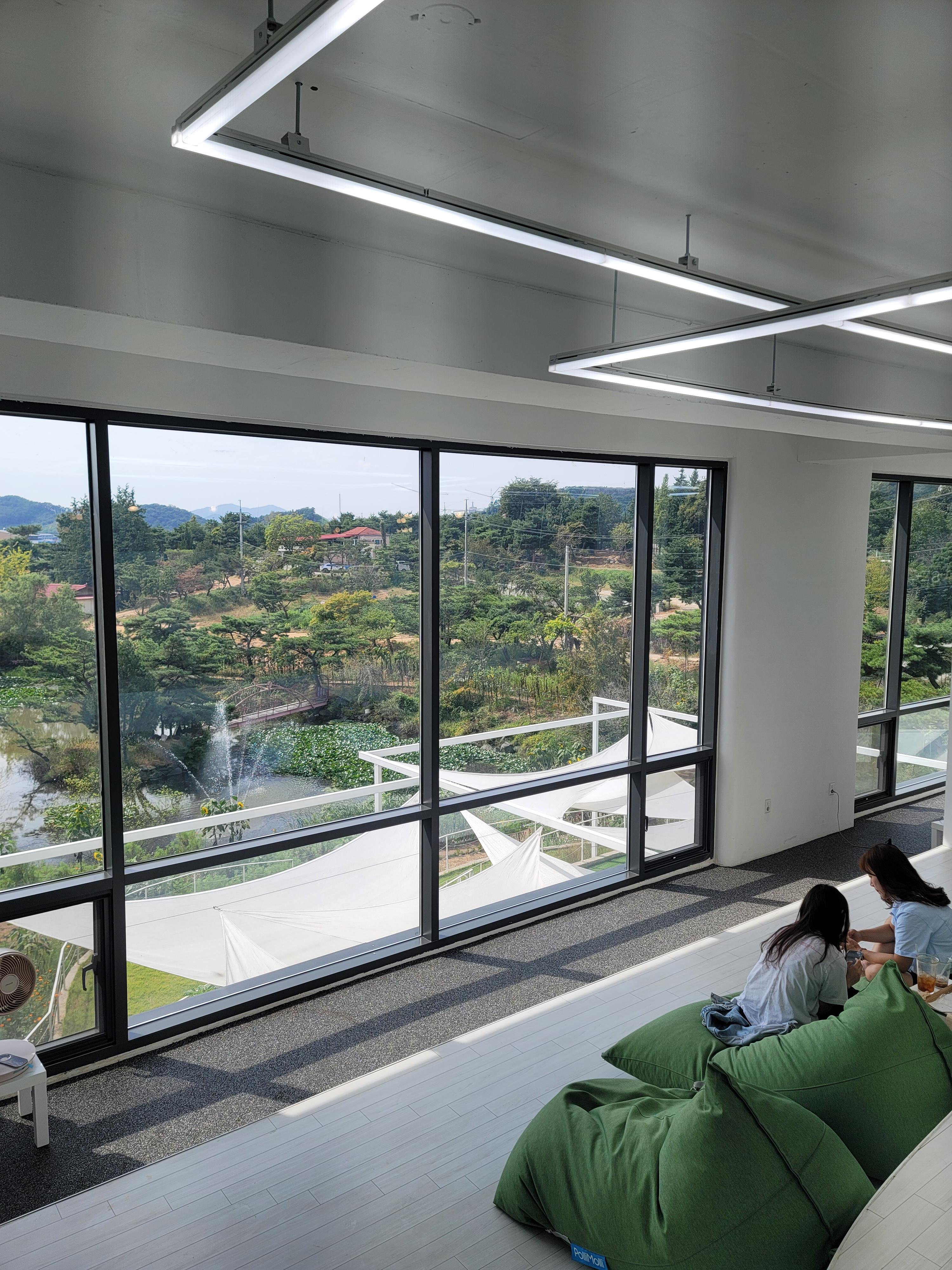 김포에는 대형카페들이 점점 많아지는 거 같아요. 주차도 편하고 공간도 넓어서 저는 좋더라구요. 시차 같은 경우는 개방감이 좋기 때문에 앉아서 커피마시며 창밖을 보는것도 힐링됩니다.