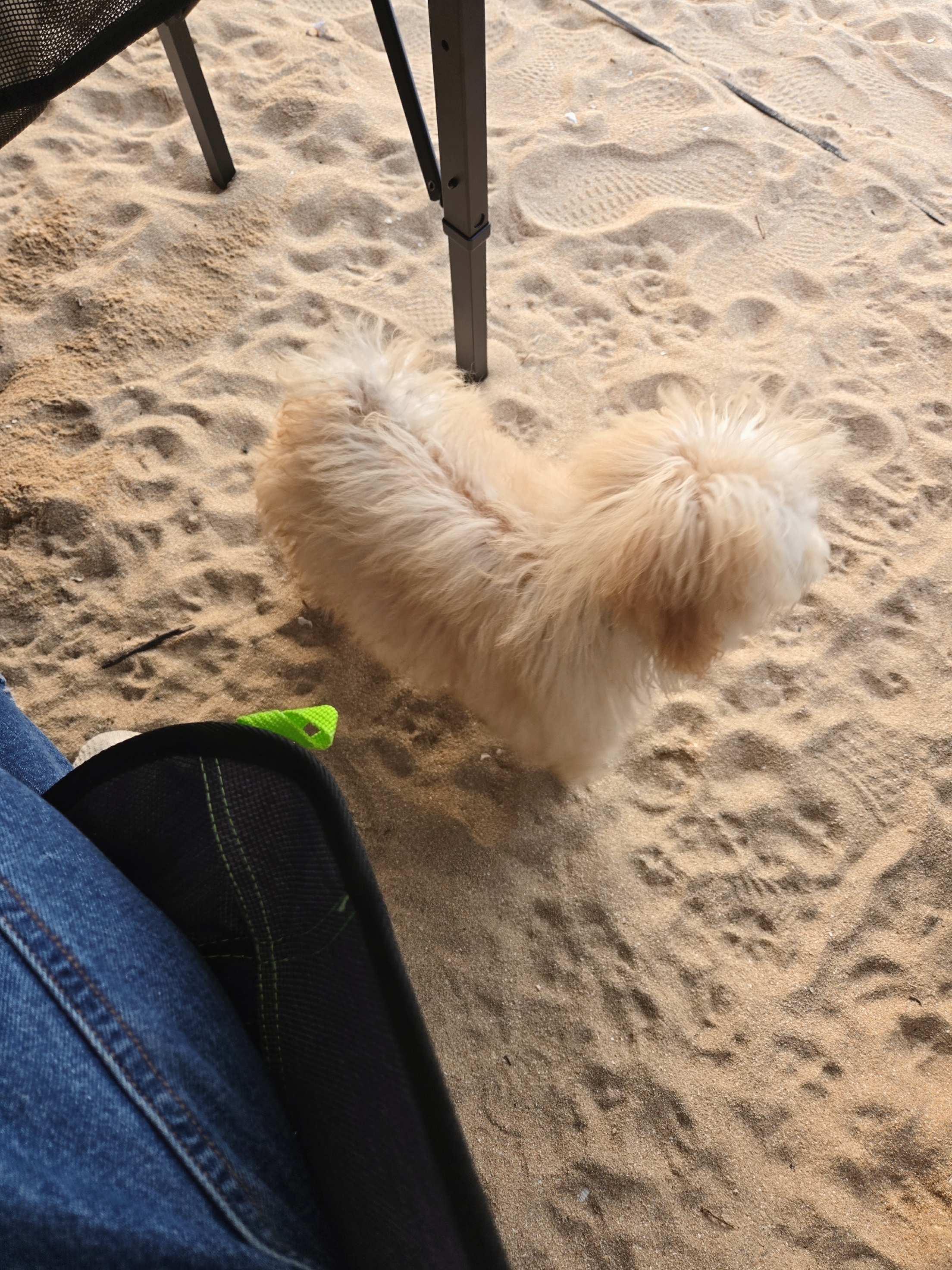 우리 보리 첫 배넷미용 하기 바로 전이네요~ 털이 복실복실 너무 귀여워요. 반려견이 있으신 분들은 같이 가셔도 됩니다. 반려견을 데려와서 캠핑하시는 분들 무지 많더라고요~