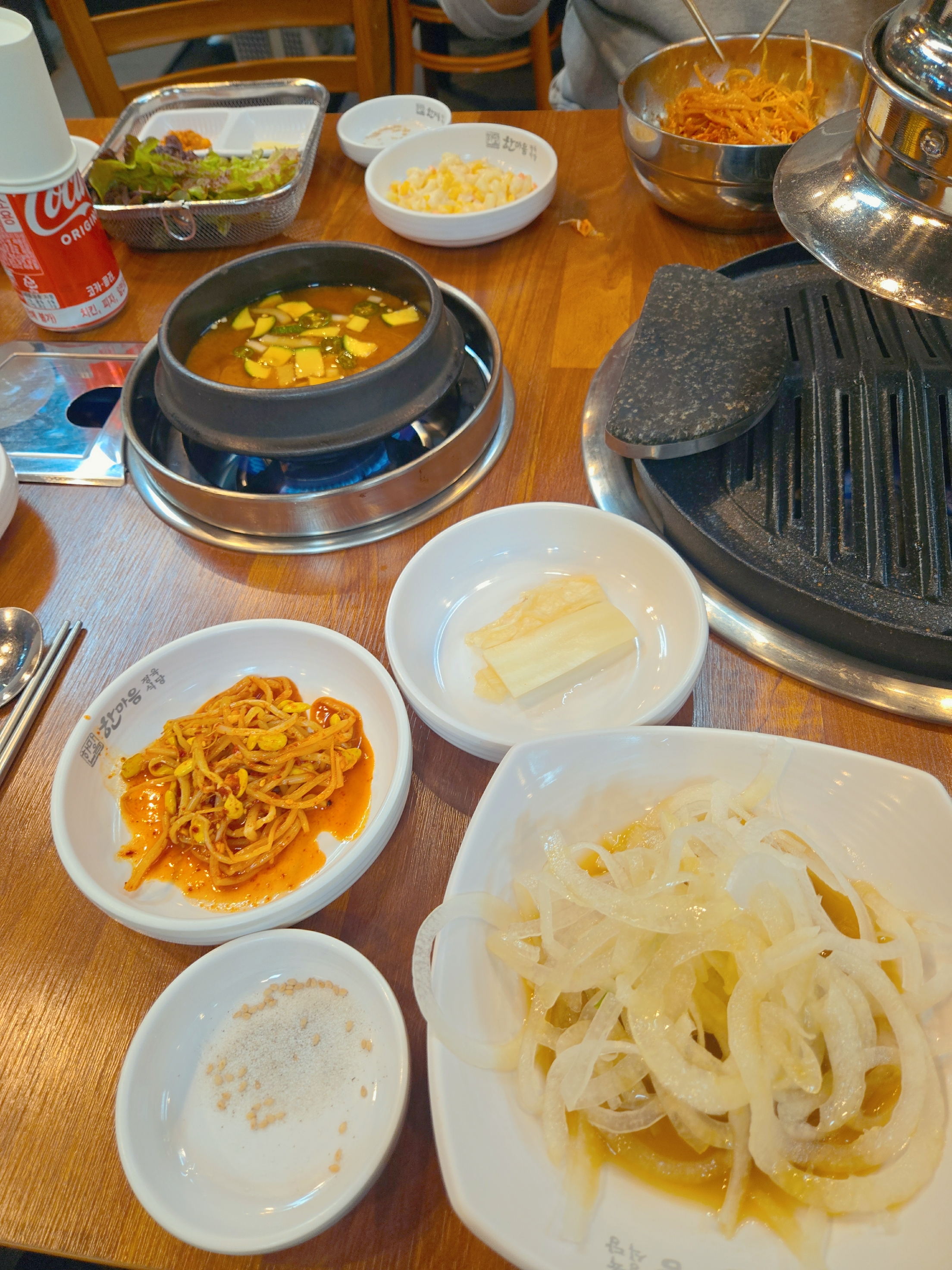 반찬도 깔끔하니 맛있어요. 된장찌개는 무한으로 리필이 됩니다. 이게 전 너무 매력적이더라구요. 파채 속에도 쫄면이 들어있어서 쫄면 먹는 느낌도 나고 맛있더라구요. 소고기 드시고 싶으신 분들에게 가성비 맛집으로 추천드려요.