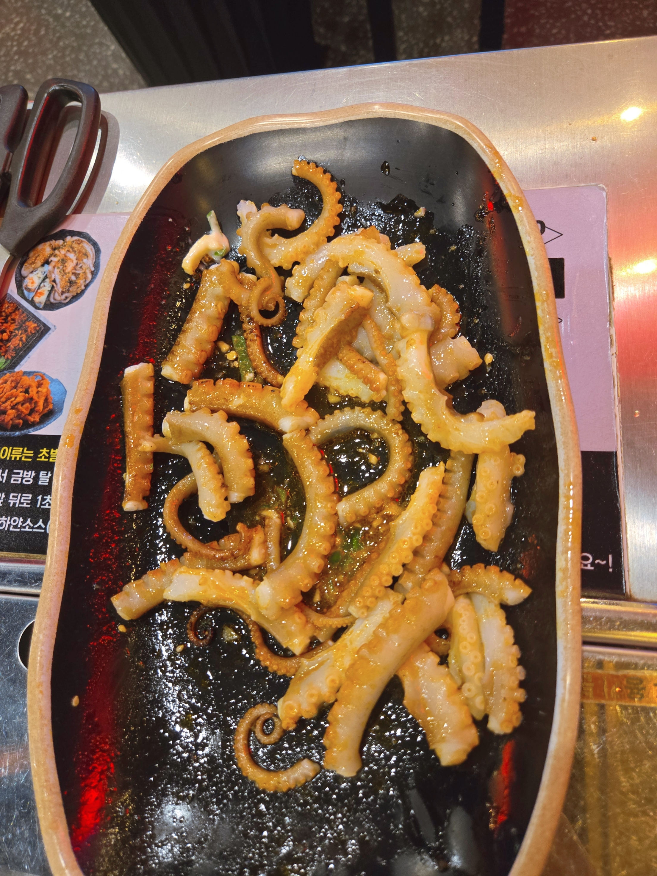 산낙지를 시키면 처음에 몇점 잘라주시는데 굽기전 정말 오리지널 산낙지도 몇점 드셔보실 수 있어요전 워낙 낙지를 좋아하기 때문에 올때마다 시켜먹는 메뉴중 하나입니다. 그리고 정말 맛난 닭 목살도 강추드려요~ 아이 어른 할거 없이 호불호 전혀없이 드실 수 있는 그런 맛이에요~ 적당한 간장양념에 감칠맛이 더해져서 숯불에 구워먹으면 정말 맛나는 닭목살구이 입니다. 우리 아이도 너무 맛나다며 엄청 먹었어요^^
