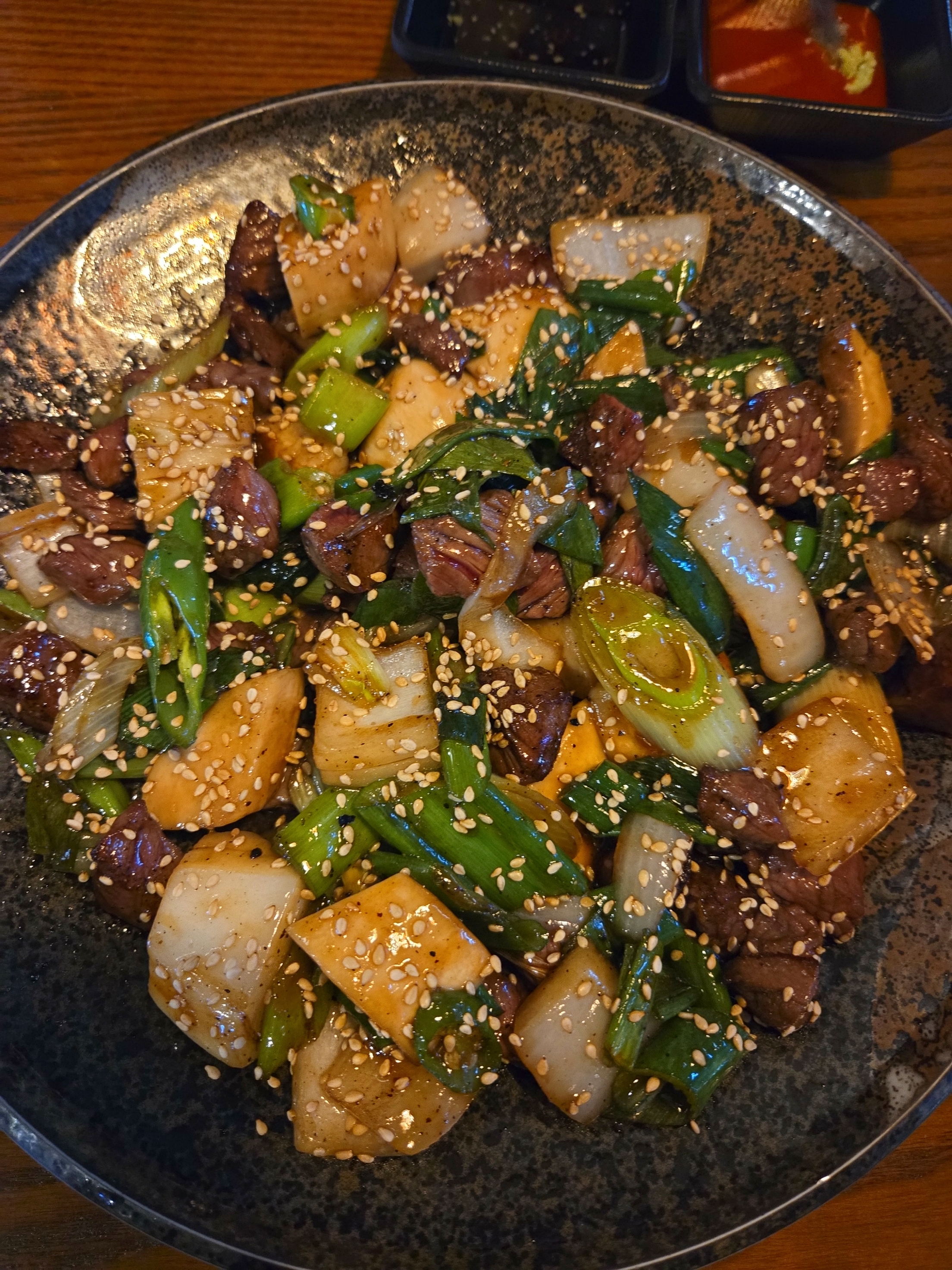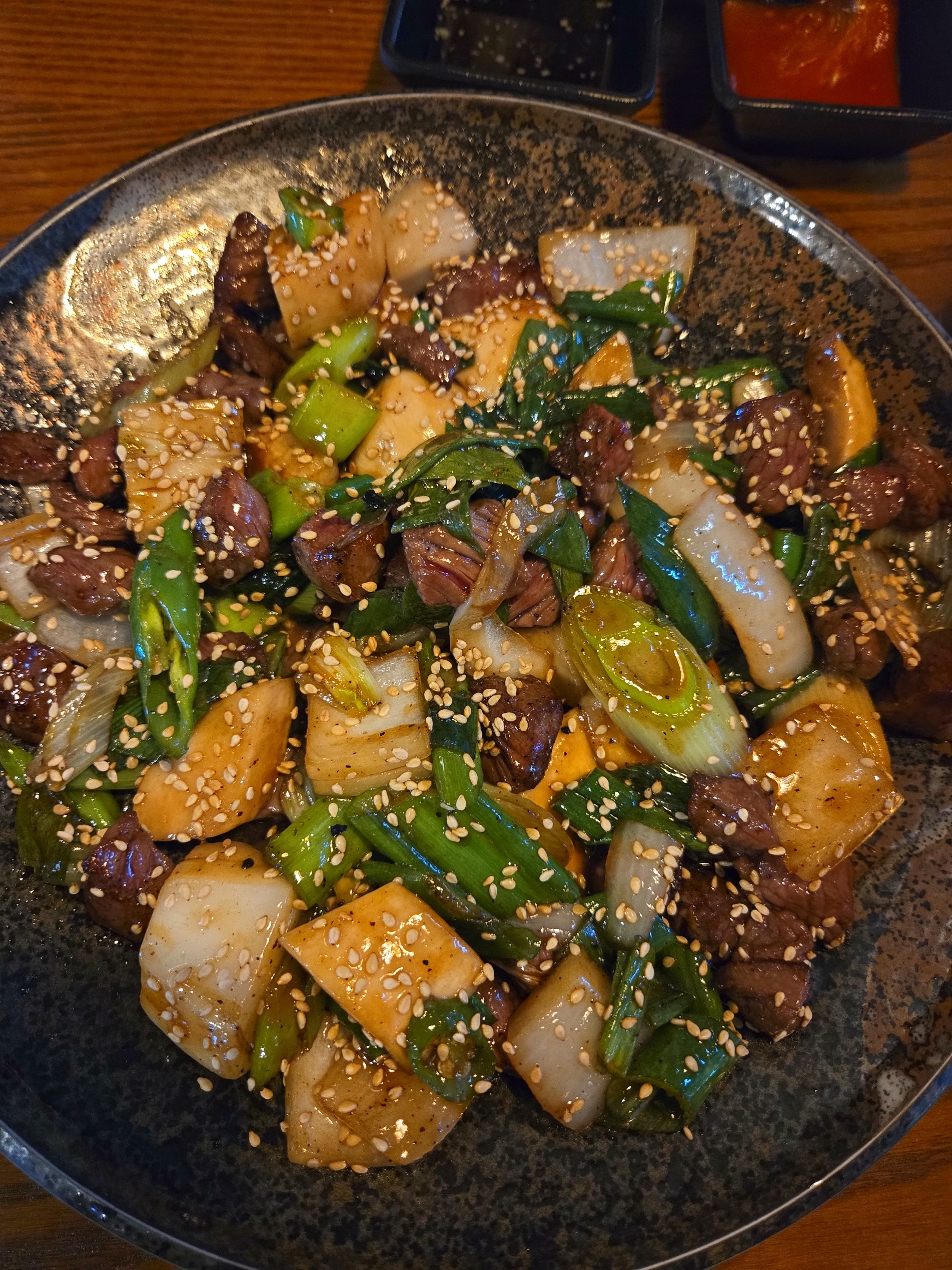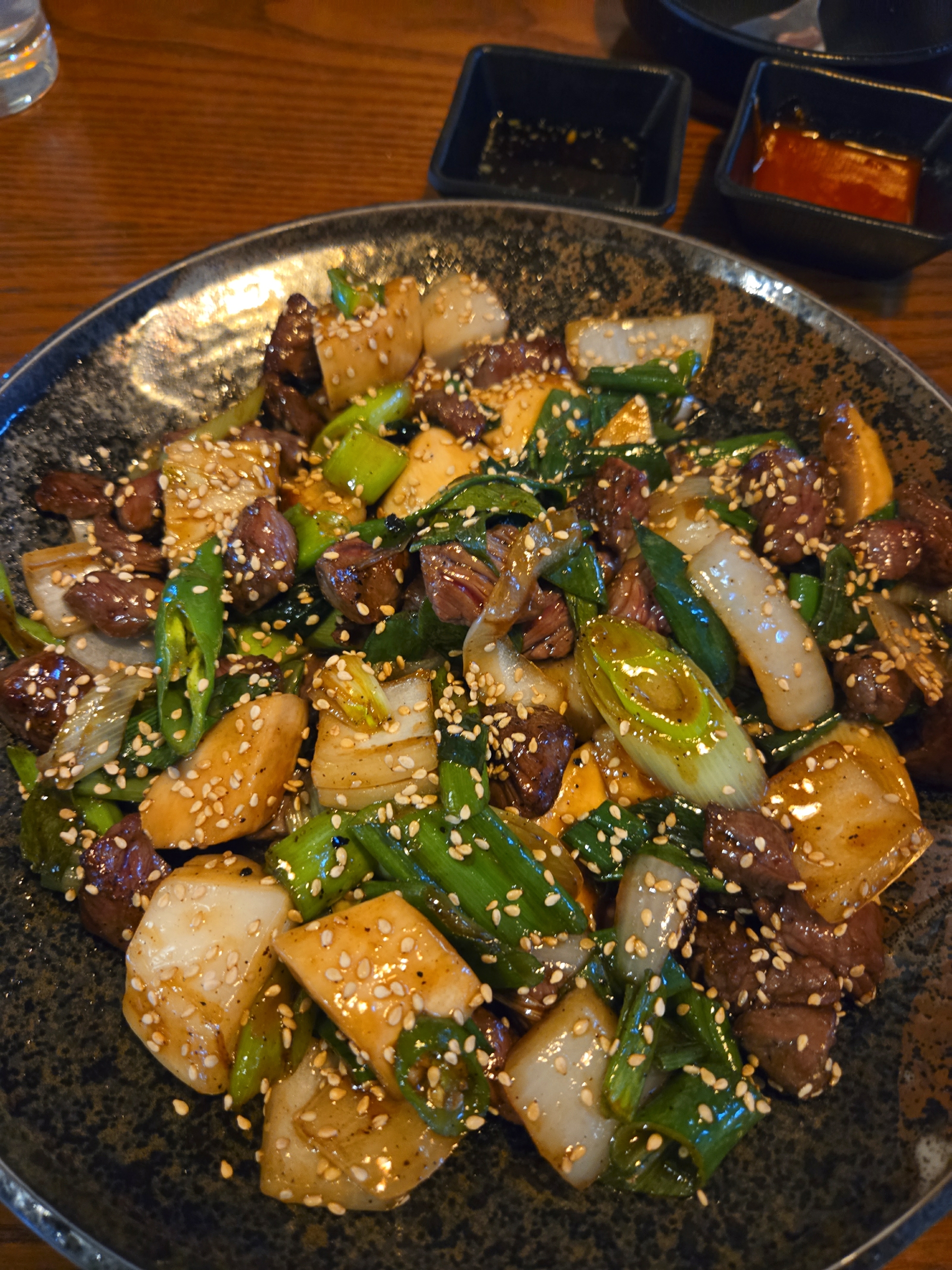 그리고 추가주문한 한우채끝볶음 요것도 별미였어요~ 고기는 조금 잘게나왔지만 야채들이 많이 들어가고 소스가 맛있어서 좋았어요 살짝 불향도 나는것이 안주로는 별미였습니다. 같이 간 직원동료가 골랐는데 탁월한 선택이었어요
