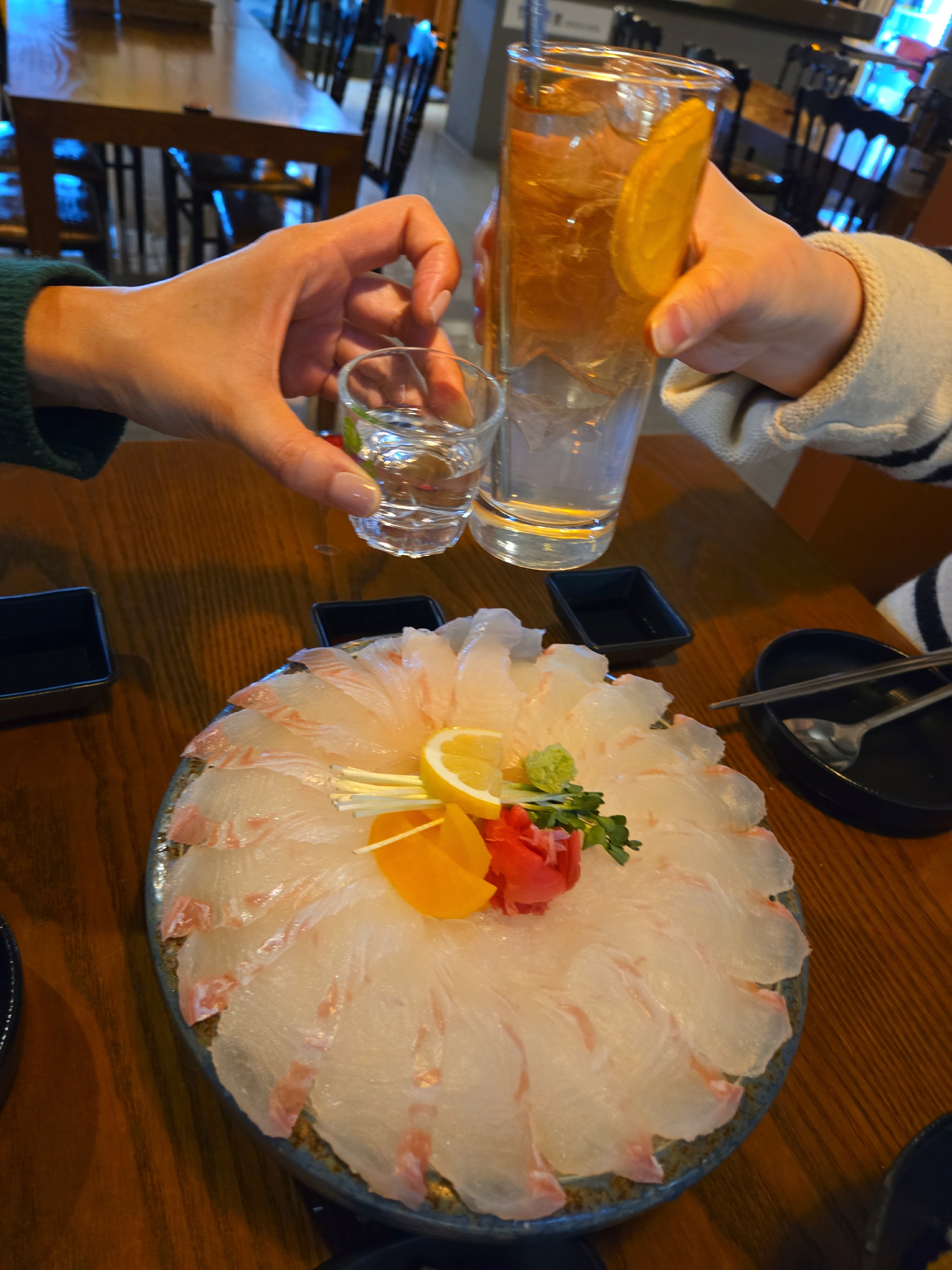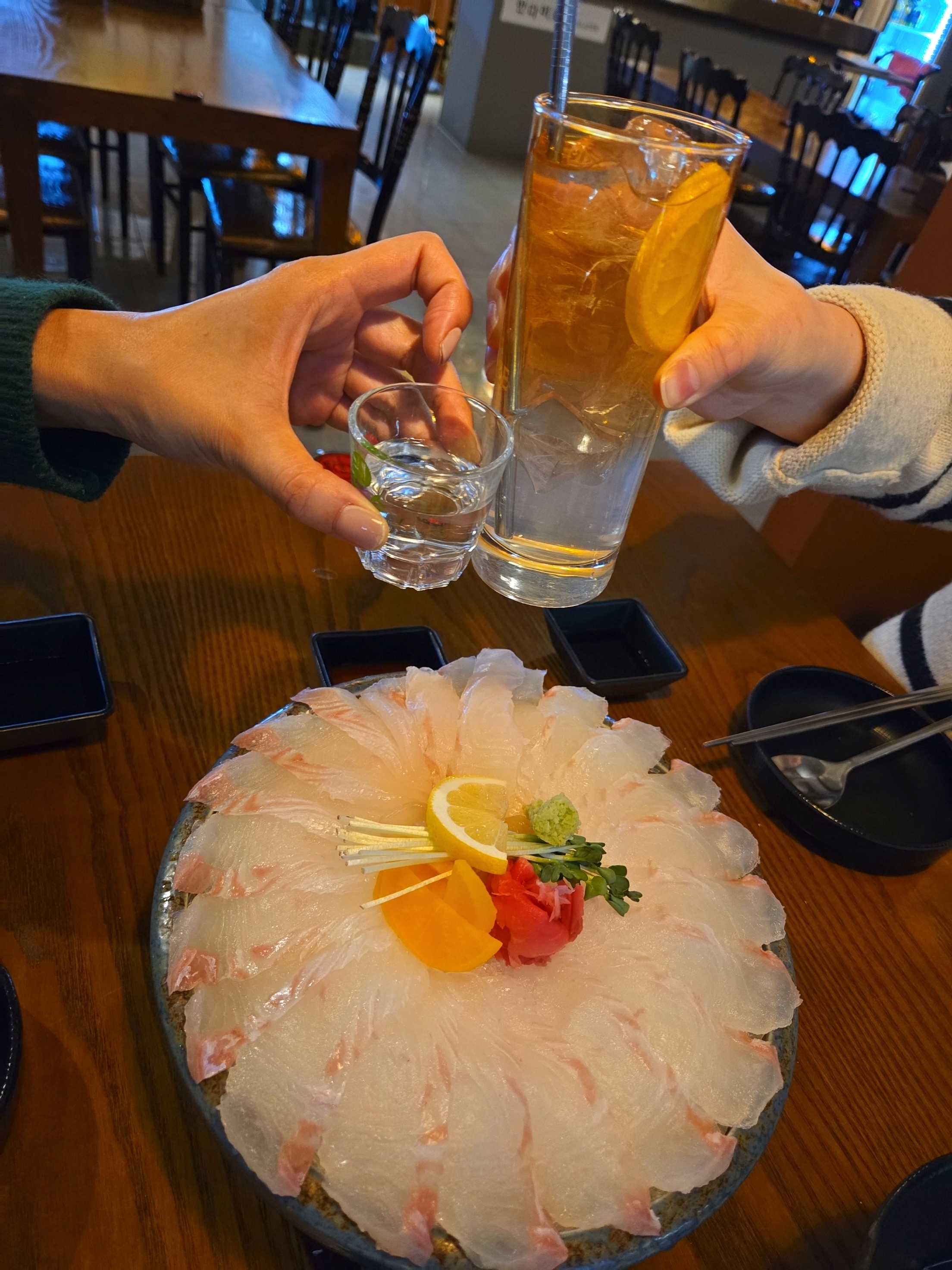 사진을 보니 침이고이네요~ 이 집은 사시미회를 꼭 드셔보시라고 추천드리고 싶어요 가게안에 수족관을 놓고 정말 신선하게 회를 내어주시니 믿음이 가더라고요~ 저는 사시미회가 너무 쫄깃하고 맛있었고 먹으면서도 계속 감탄사를 연발했습니다. 회는 싱싱하고 시원하게 먹어야 제맛아니겠어요? 아 또 가고싶어집니다.
