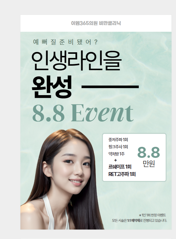 - 완전지방분해 + 지방연소 + 항산화 + 분해과정 활성화 조효소(에너지대사를 강화한 주사요법)