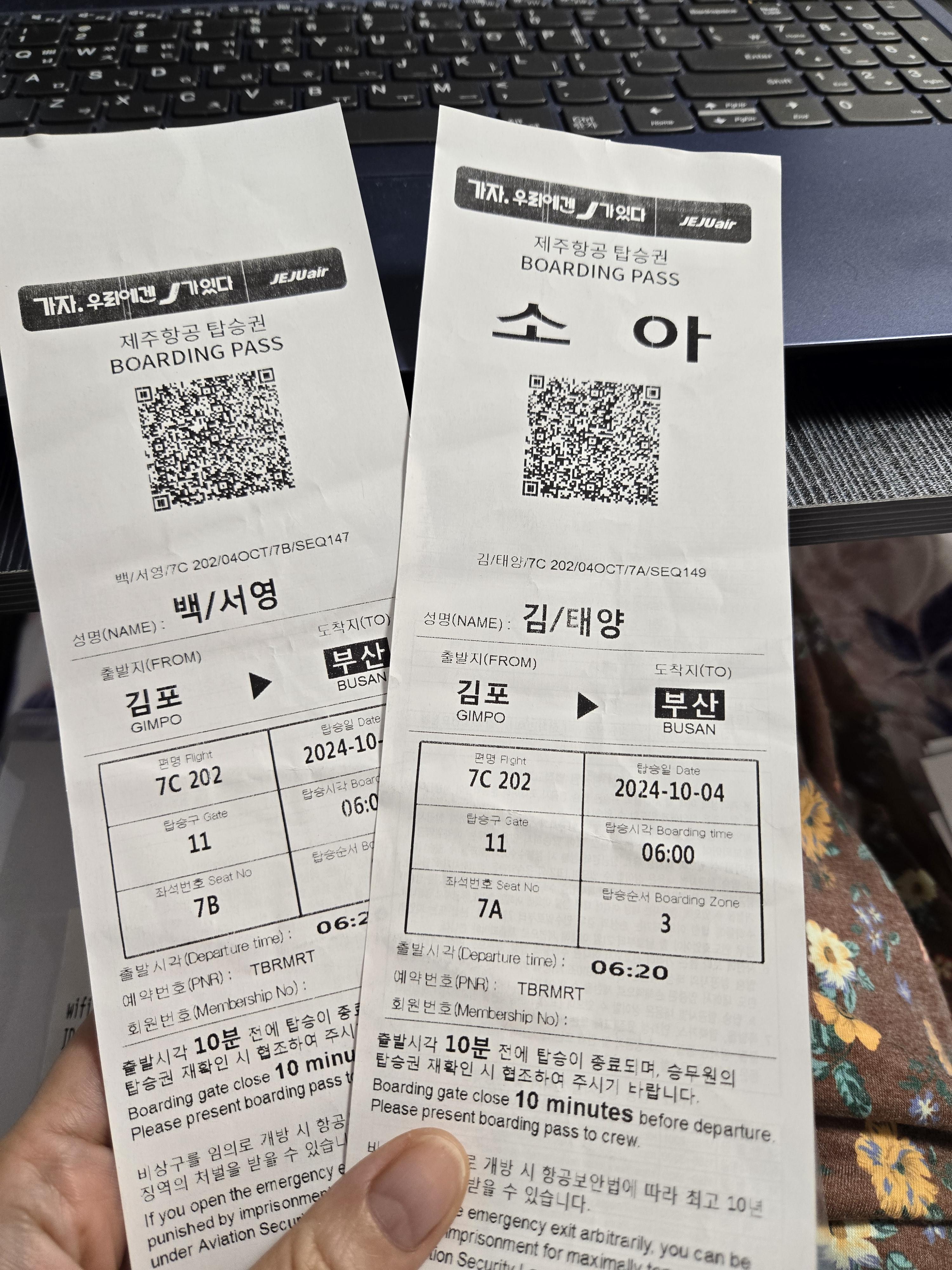 아이와 1박2일로 부산에 다녀왔어요. 10월 초에 다녀왔는데 정리해서 후기를 좀 남겨보려고요. 비행기표는 각각 편도로 구매를 했습니다. 부산가는 비행기는 새벽시간대라 아이랑 같이 결제하니 9만원대가 나왔어요.